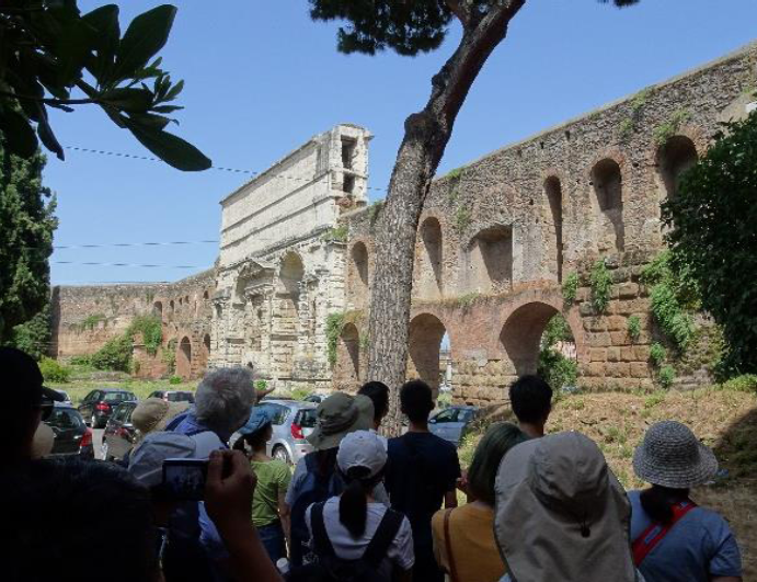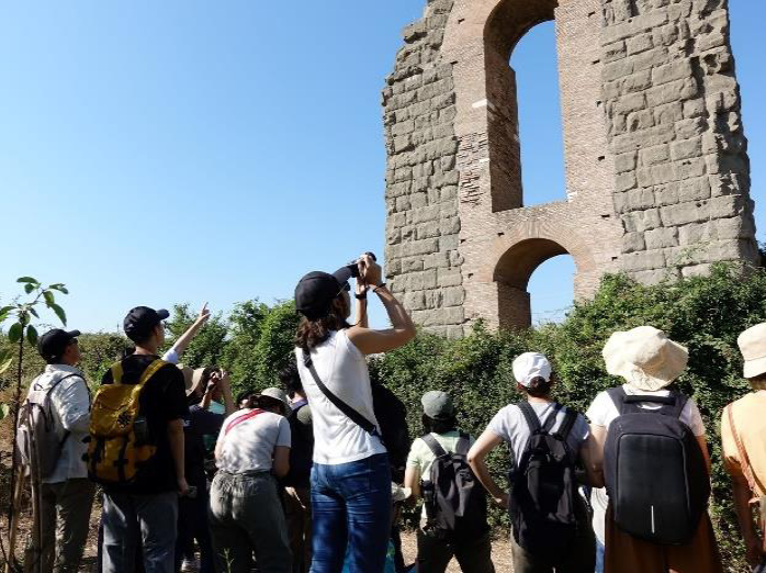 第一週的課程主要是考古學家Dr. Jan Gadeyne帶領大家認識古羅馬,Jan用淺顯的英文講解,相信大部份的同學都可以聽懂。系上老師也同時介紹從古羅馬到現在一直有人居住的「戰神之地」,幫助同學了解Jan的課。一週下來介紹了古羅馬人們居住的環境、羅馬帝國全盛期的建築、衰退的中世紀住宅以及中世紀晚期重建的都市,Jan也帶領大家到郊外看古羅馬的水道,了解水道的引水入城、加建與維修以及廢棄後的重新利用,同時也讓大家認識一個二世紀的豪華別墅,並參觀羅馬古道Via Appia旁像是太空船的超大墳墓,主人為了讓人知道他是誰而建此特別的墓,但諷刺的是二千年來所有裝飾掉落後,沒有人認得這是誰的墓。最後Jan也帶大家認識羅馬如何從一個敬拜萬神的城市,轉變成敬拜獨一真神的基督教城市。