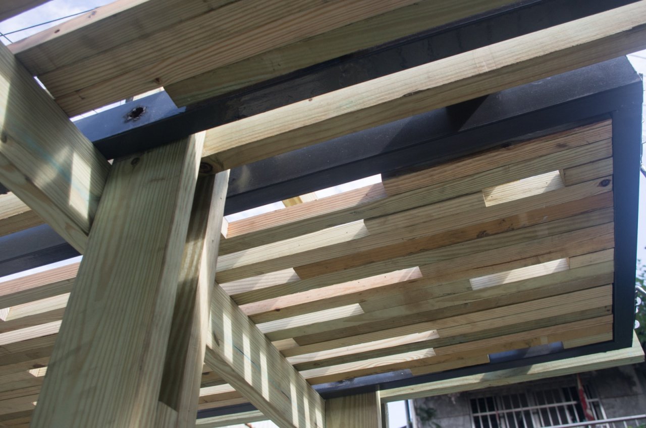 案件位於基隆罾仔寮社區,虎仔山與基隆港的山海之間。以木構三夾工法輔以鐵件,為缺乏聚集空間的社區製造一個可匯集人群的涼亭空間。